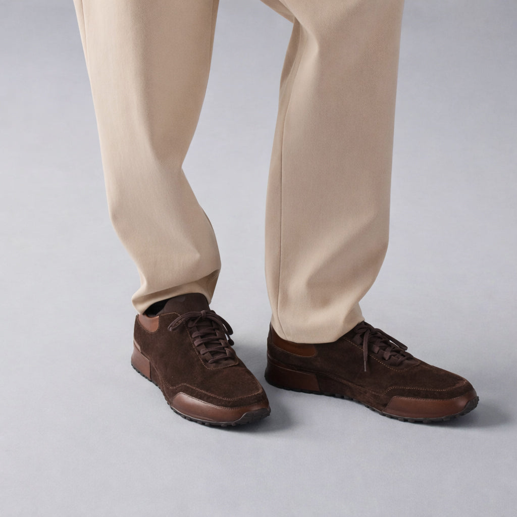 Zengin kahverengi tonları, sportif görünümü sofistike bir seviyeye taşırken günlük kullanım, şehir yaşamı ve smart casual kombinler için zamansız bir alternatif sunar.