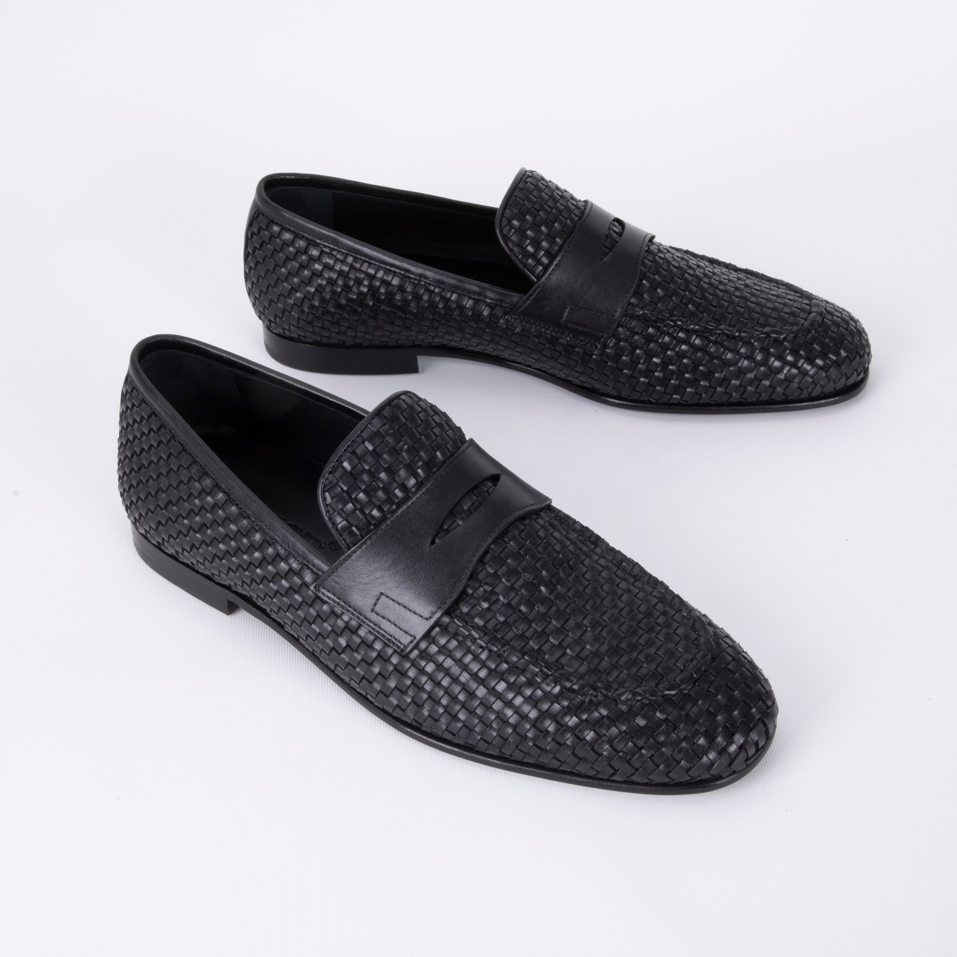 Firenze Black Loafer Hand-Woven Premium Leather Men's Shoes - Size 46